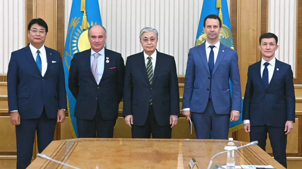 Касым-Жомарт Токаев встретился с президентом компании Chioda Technol Corp (Япония) Атару Иноуи, ведущим научным сотрудником Института Лауэ-Ланжевена (Франция) Валерием Несвижевским и директором Объединенного института ядерных исследований (Россия) Григорием Трубниковым.