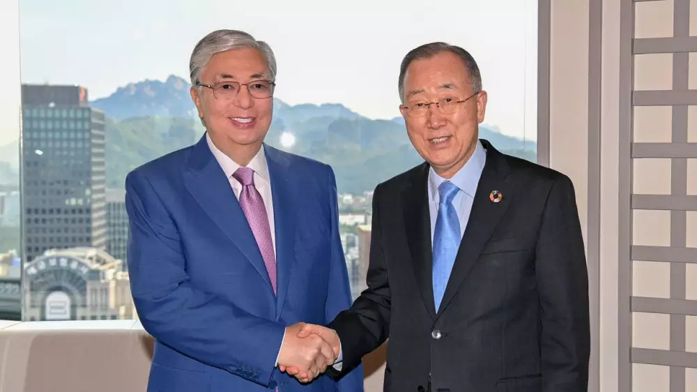 Государственный визит Президента Казахстана в Южную Корею завершился встречей с председателем Ассамблеи Глобального института зеленого роста (GGGI), бывшим генеральным секретарем Организации Объединенных Наций Пан Ги Муном, передает Tengrinews.kz со ссылкой на сайт Акорды.