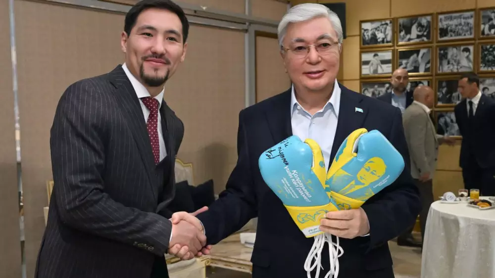 Подарок Касым-Жомарту Токаеву преподнес профессиональный боксер, чемпион мира в среднем весе по версиям WBO и IBF Жанибек Алимханулы.