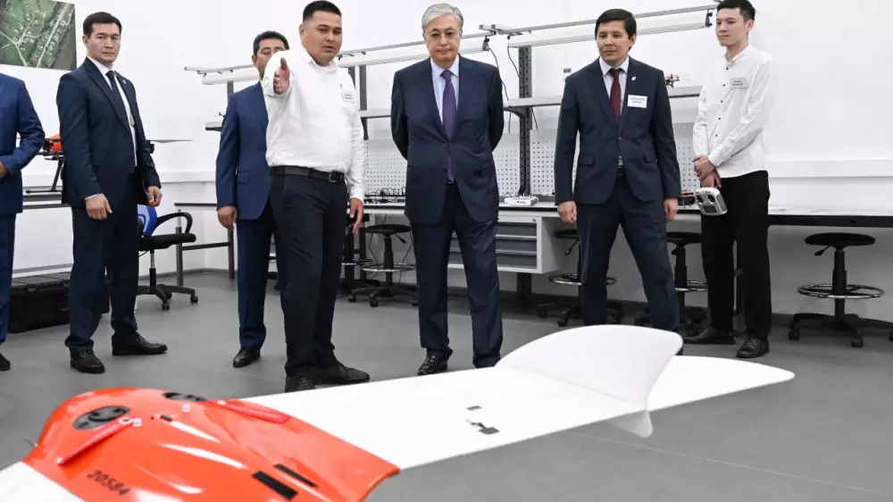 "Президент осмотрел лабораторию беспилотных летательных аппаратов, где студенты обучаются анализировать данные дистанционного зондирования земли по ГИС-технологии. Президенту также показали центры инновационных методов получения деталей сложной конфигурации, симуляционного обучения и практических навыков", - отмечает пресс-служба Акорды.
