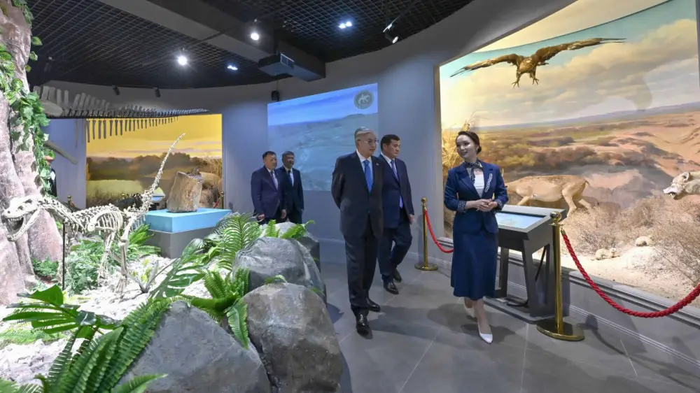 Президент ознакомился с историко-культурным наследием региона, осмотрел залы, посвященные археологии, этнографии, прошлому и современной жизни Казахстана.