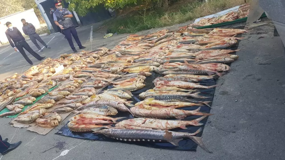 "Общий вес изъятой красной рыбы составил свыше одной тонны, "улов" икры скромнее - 200 граммов. Задержаны 28-летний водитель автомашины и 29-летний пассажир. Оба молодых человека водворены в ИВС. Досудебное расследование проводится по части 2 статьи 339 УК Казахстана "Незаконное обращение с редкими и находящимися под угрозой исчезновения, а также запрещенными к пользованию видами растений или животных, их частями или дериватами", - сообщили в пресс-службе ДП области.