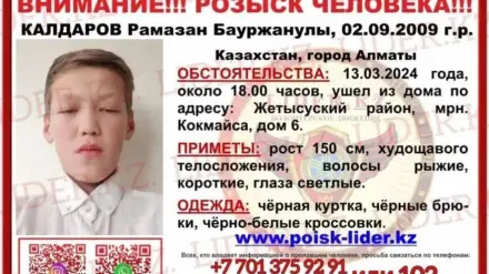 В полиции города возбудили дело о розыске 15-летнего мальчика, передает Tengrinews.kz.