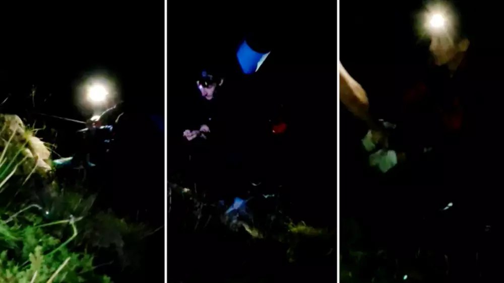 У обрыва нашли заблудившихся в горах Алматы туристов Кадры из видео