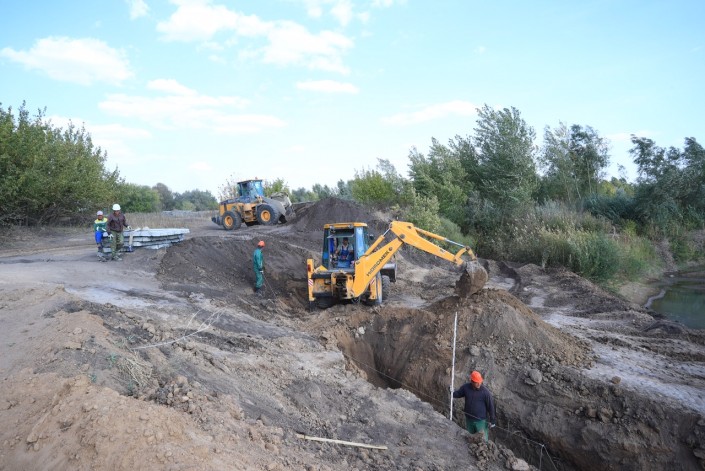 Это переливная дамба, на одной стороне которой будет собираться 150 тысяч, а на второй 280 тысяч кубометров воды. Всего же от дамбы и до села Каражар будет возможным собрать около пяти миллионов кубических метров воды. Это говорит о том, что внешние воды не уйдут просто в степь, а будут приносить пользу населению и поспособствуют развитию бахчеводства и овощеводства.