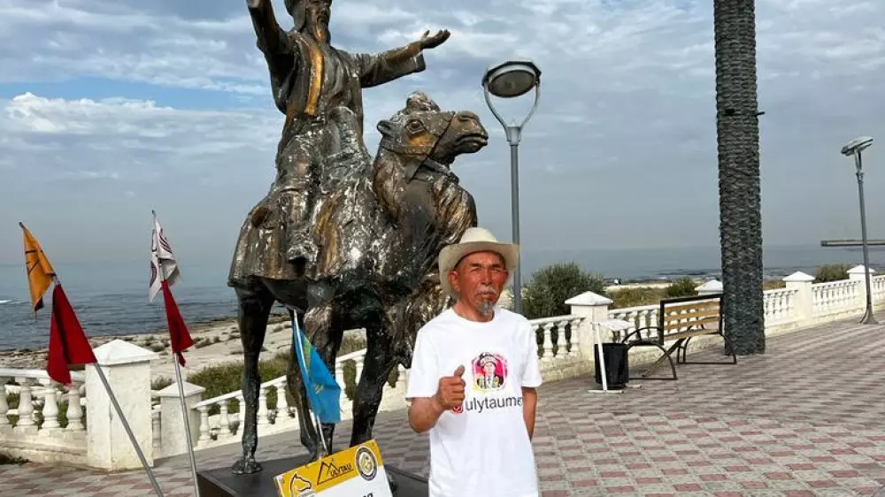 72-летний Сарсенбай Котрашев пешком обошел более 20 городов страны и сегодня добрался до центра Мангистауской области - города Актау, сообщает Центр общественных коммуникаций.