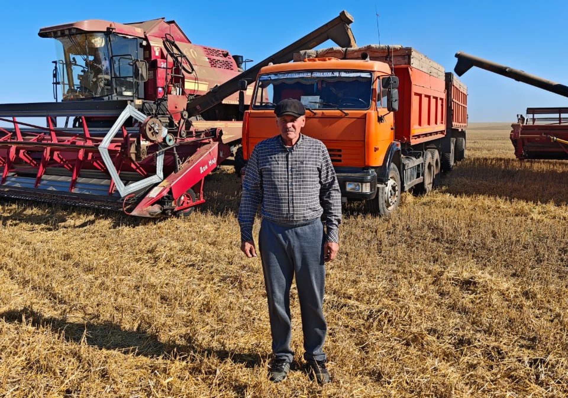 Многие из здешних специалистов десятилетиями работают в одном коллективе. Один из них - водитель Сергей Белоцкий. Он вывозит урожай с полей. Родом из села Узынколь, мужчина пришел в хозяйство ещё в 1979 году, тогда это был совхоз имени Ушакова. И вот уже 45 лет не расстаётся с рулём.