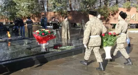 Почтить память героев пришли представители общественных объединений, консульств иностранных государств, воинских частей, школ, а также ветераны Великой Отечественной войны.
