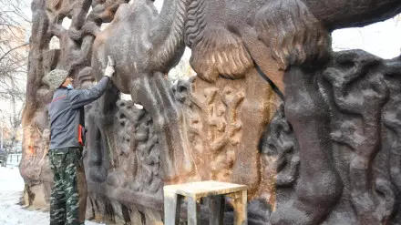 В Алматы восстанавливают декоративное рельефное панно "Верблюды", которое было создано в 1982 году, передает корреспондент Tengrinews.kz.
