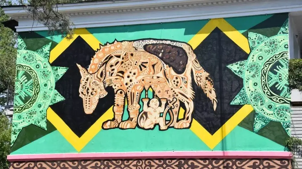 Мурал "Волчица" появился в Алматы в 2019 году. Его автором стал казахстанский художник Мухит Аканаев, а реализовать идею ему помогли студенты Казахской национальной академии искусств имени Жургенова Аманкул Нурболат и Кенес Бекболат.