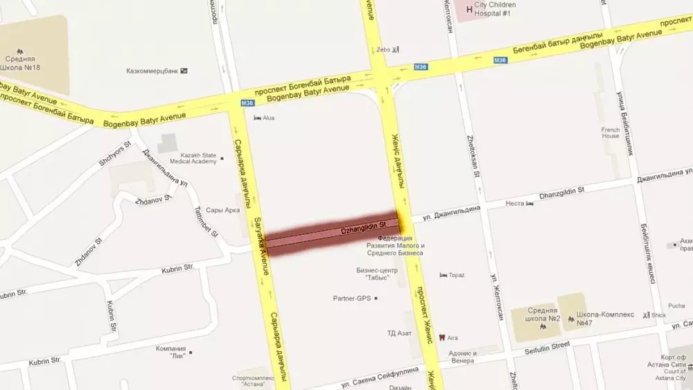 "В связи с реконструкцией улицы Джангильдина в понедельник, 9 июля, с 22.00 будет перекрыто движение по улице Джангильдина на участке от проспекта Сарыарка до проспекта Женис и на участке от проспекта Женис до улицы Желтоксан. (...) Процесс реконструкции требует перекрытия движения автотранспорта сроком до 1 сентября", - говорится в информации акимата.