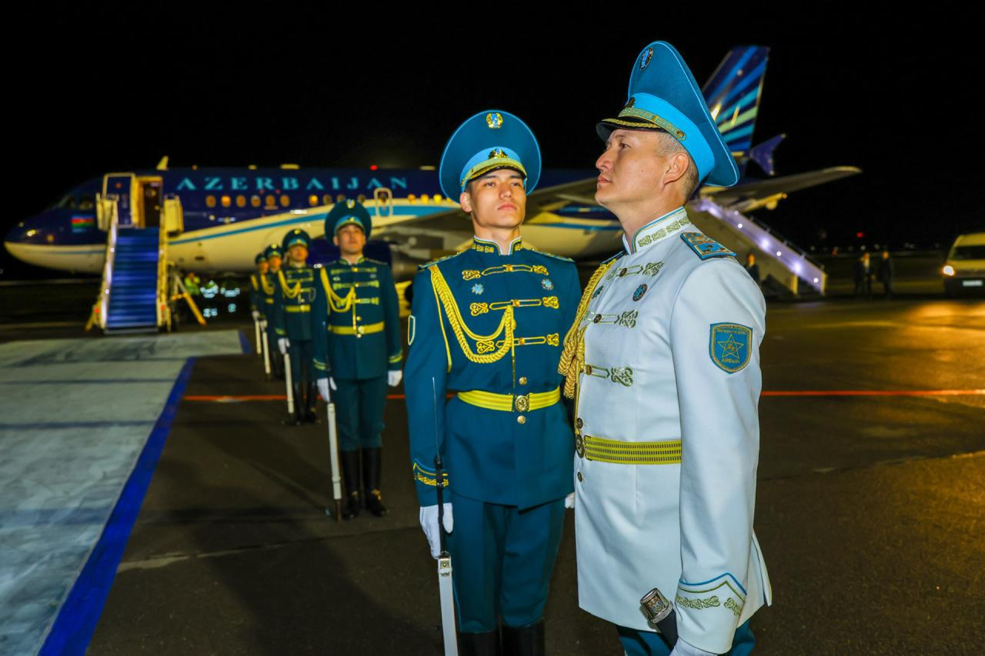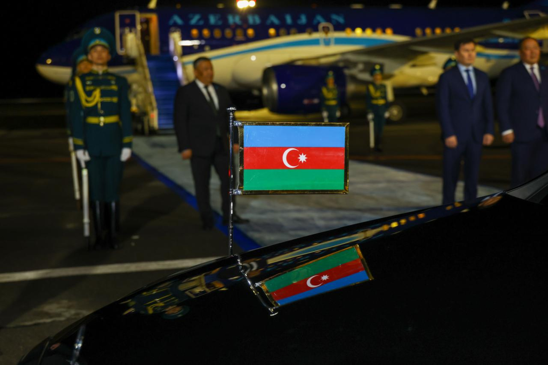 В международном аэропорту Астаны Али Асадова встретил первый заместитель премьер-министра Казахстана Роман Скляр и другие официальные лица.