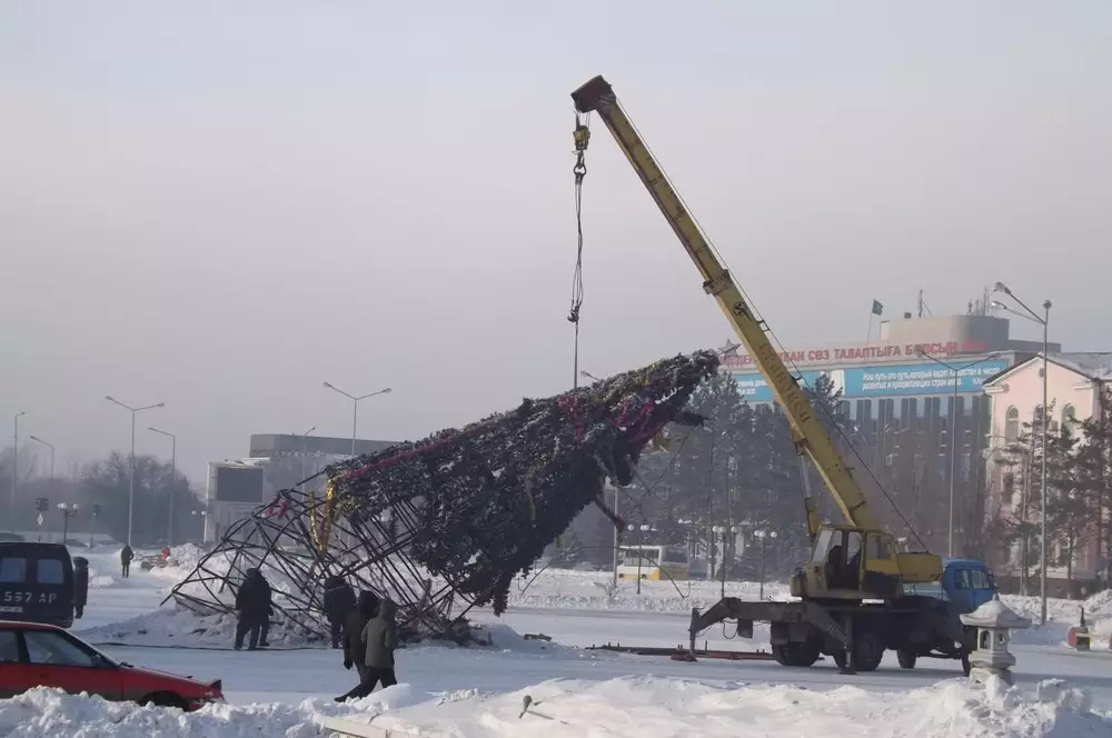 В Семее не смогли восстановить опрокинутую бураном елку Елка. Фото Руслан Шакабаев©