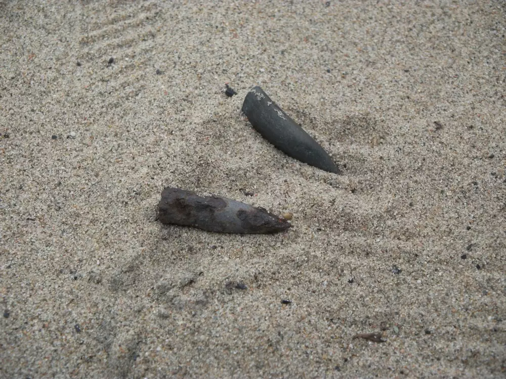 Жуков отметил, что во время раскопок обнаружены две ржавые пули и военная пряжка. "Стрелять здесь вполне могли, но вот черепа пока мы не нашли. Хотя место для этого очень подходящее. Пули рикошетить не будут, а при промахе просто уйдут в песок", - пояснил краевед.
