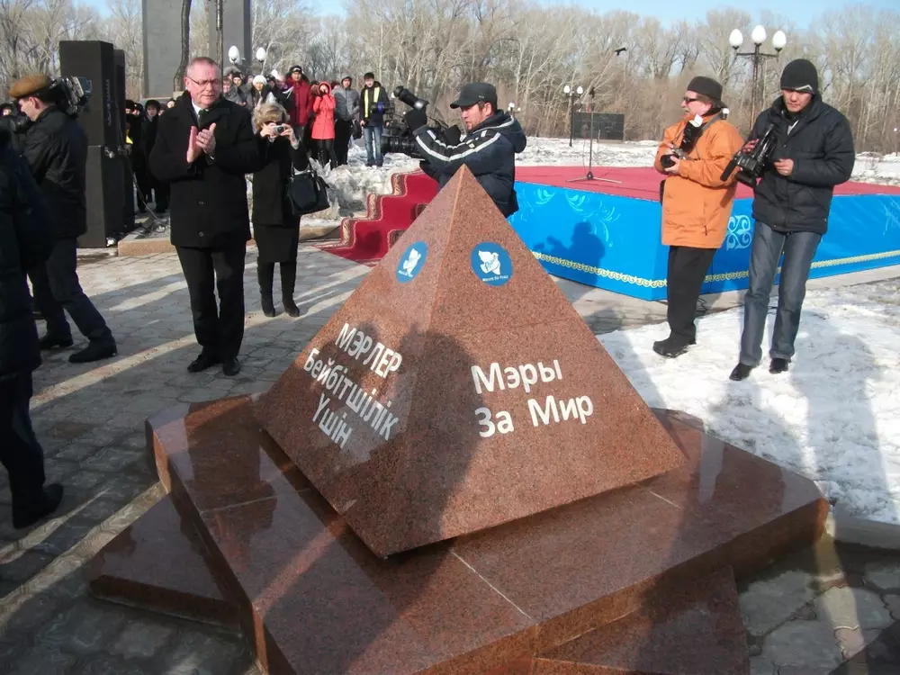 "Только повсеместный отказ от ядерного оружия может обеспечить мир и безопасность на Земле", - сказал во время открытия памятного камня аким области Бердыбек Сапарбаев. - Именно к этому народ Казахстана призывает всех людей доброй воли по всему миру. Наша страна с огромным удовлетворением воспринимает мирную инициативу организации "Мэры за мир".