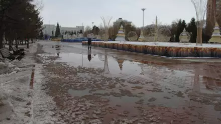 28 декабря на улицах города образовались огромные лужи, коммунальные службы ведут их откачку. Также растаяли катки, а горка на площади Республики потеряла свою прежнюю форму, передает Tengrinews.kz со ссылкой на YK-news.kz.