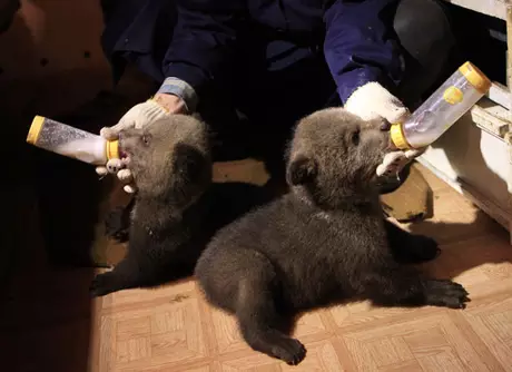 Бурая медведица Аида в свое время прославилась исполнением уникального трюка во время верховой езды на лошадях. Но работа в цирке давно в прошлом. Уже пять лет подряд она приносит потомство.