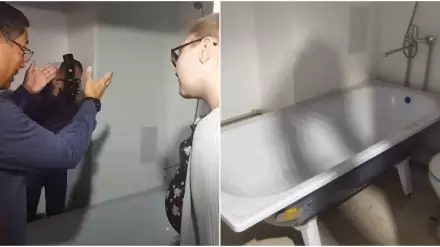 Ерболат Досаев принял приглашение жительницы и поднялся в новую квартиру, где еще не завершился ремонт. Ванна действительно была установлена не у края стены и всего в 60 сантиметров от санузла.
