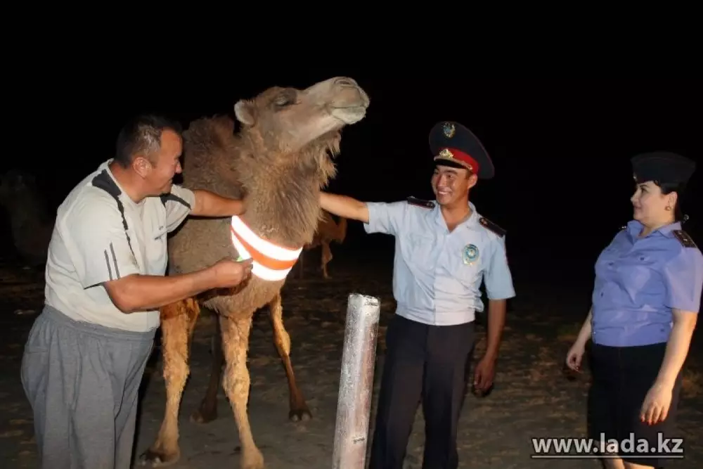 В Мангистау дорожные полицейские провели необычный эксперимент - они предложили владельцам лошадей и верблюдов "пометить" свой скот светоотражающими лентами, сообщает "Лада".