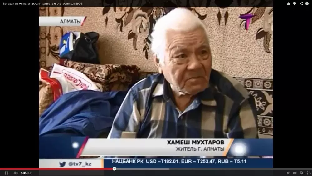 Ветеран из Алматы Хамеш Мухтаров уже не первый год добивается, чтобы его признали участником Великой Отечественной войны, сообщает "Седьмой канал".