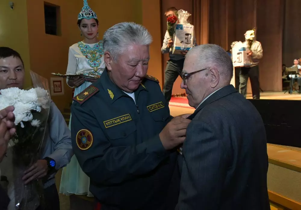 Мероприятие открыл руководитель информационной группы генерал-майор Мухометкали Сатов, отметивший героический подвиг старшего поколения в Великой Отечественной войне, благодаря которому мы живем сейчас в мире и согласии. В ходе встречи приглашенным на концерт ветеранам войны Степану Башкирову, Дмитрию Сергееву и Ивану Клименко от имени министра внутренних дел и главнокомандующего Национальной гвардией были вручены ценные подарки и юбилейные медали "25 лет войскам правопорядка".
