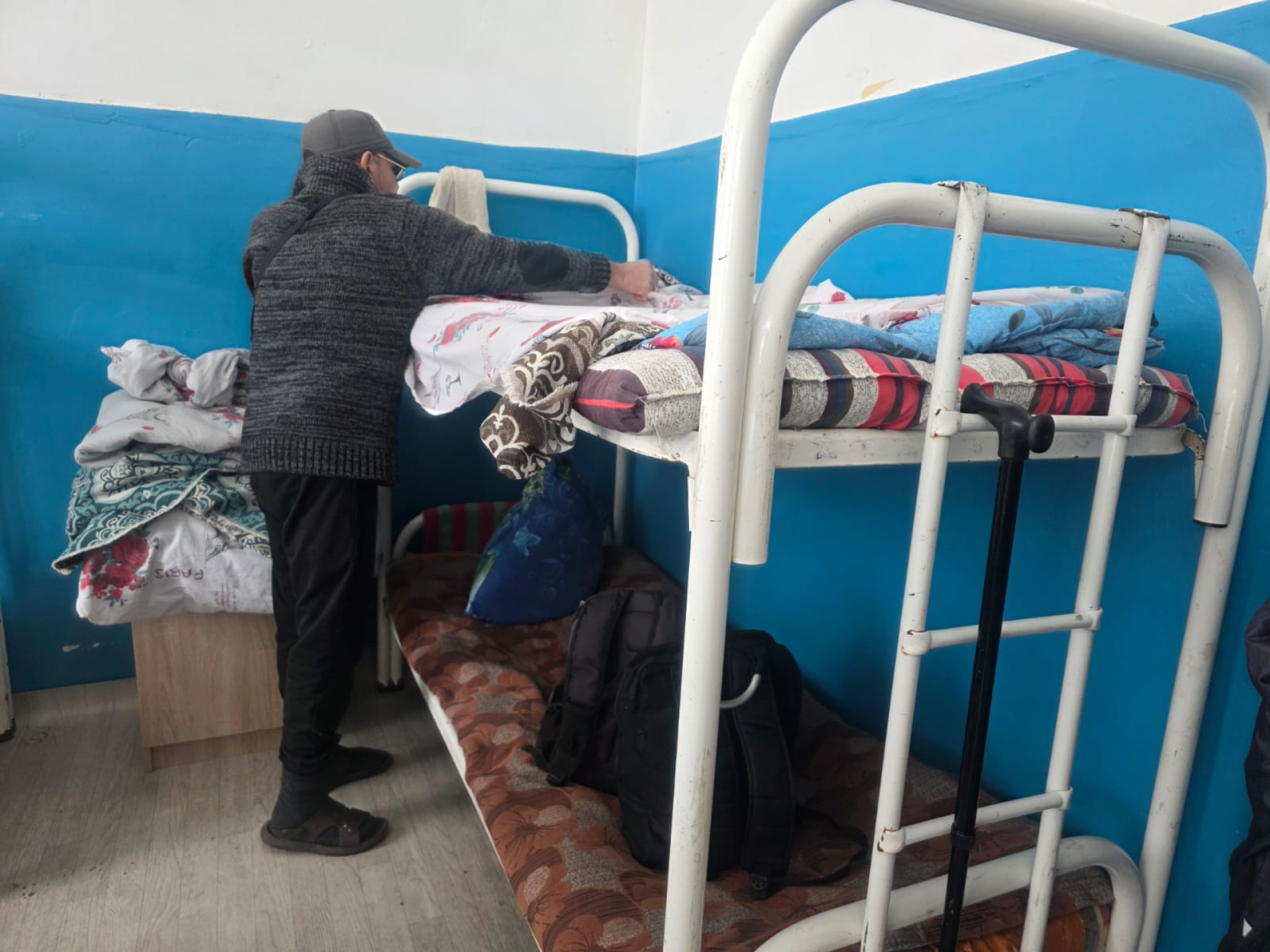 Далее мужчина показывает постояльцев центра, утверждая, что среди них есть лица с инвалидностью и тяжелобольные люди, которым якобы не оказывают необходимую помощь.