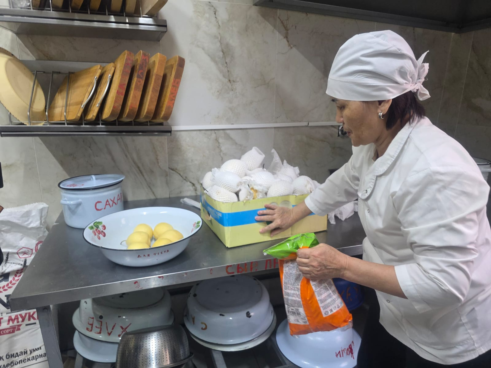 Во время посещения центра журналистам показали кухню и жилые помещения спецучреждения. В день осмотра для постояльцев готовили манты.