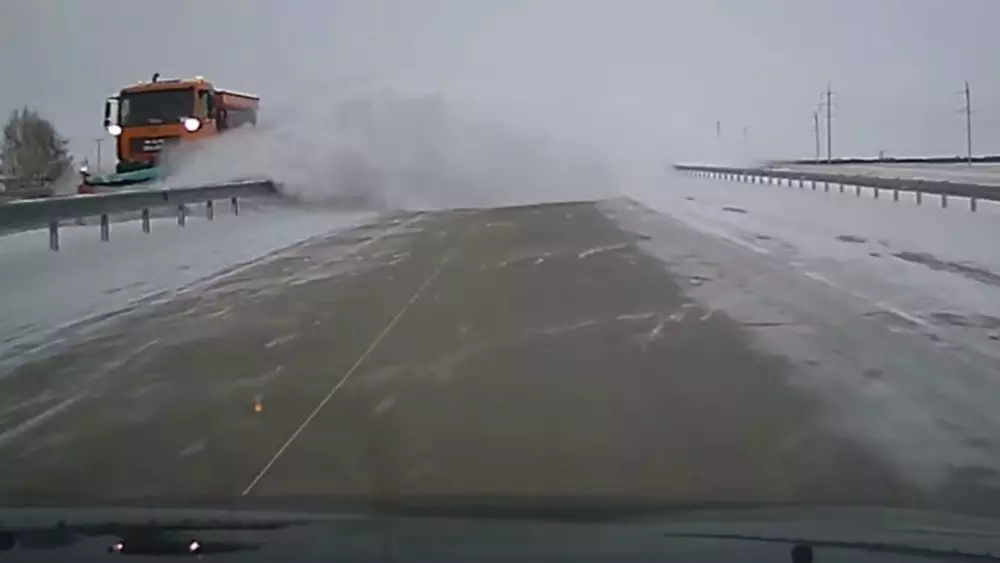 Видео с кадрами о том, как снегоуборочная машина, очищая от снега одну полосу автодороги, закидывает его на противоположную, обдавая при этом снежной пылью проезжающие мимо авто, появилось в сети. Автор ролика утверждает, что инцидент произошел 6 января 2015 года на автодороге "Астана - Кокшетау".