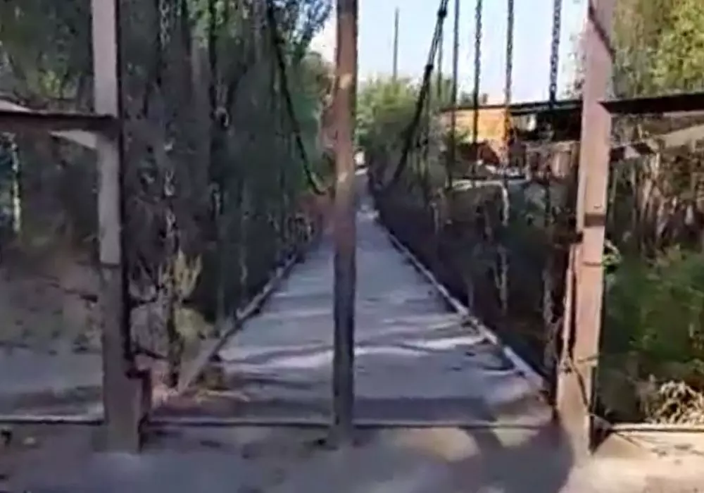 Качающийся мост напугал жителей Жаркента. По нему ежедневно проходят десятки малышей, идущих в школу. Жители обеспокоены безопасностью.