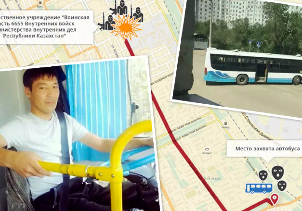 Напомним, 5 июня на автобус № 1 было совершено нападение террористов, в тот момент, когда общественный транспорт, изменив траекторию движения маршрута, двигался по "Малой Алие" (так называется район около оружейного магазина "Паллада" - прим.), где в тот день были расстреляны продавец, охранник, покупатель и случайный прохожий - 68-летний пенсионер. Сам Мурат Есекенов изменил маршрут, по его словам, из-за того, что пытался объехать затор, к тому же был неисправен двигатель автобуса, и Мурат спешил на ремонт.