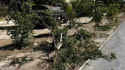 В Актау во время полива водитель снес деревья и врезался в жилой дом, передает Tengrinews.kz.