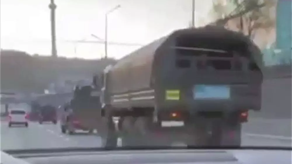 Очевидец снял на видео военную технику на проспекте Аль-Фараби в Алматы. Видео появилось в социальных сетях, передает корреспондент Tengrinews.kz.