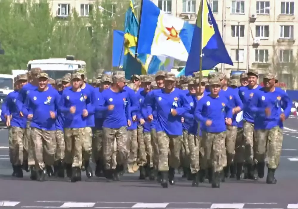 Военные Астаны устроили забег в честь 70-летия Победы Кадр из видеоролика YouTube