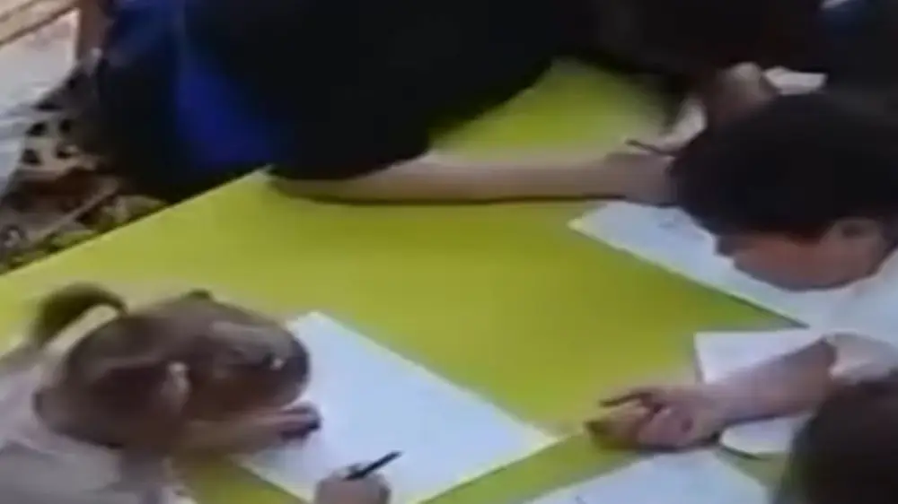 Записи с камер наблюдения в предшкольной группе повергли взрослых в шок. На кадрах педагог, объясняя правописание, несколько раз бьет шестилетнюю девочку кулаком по лбу. При этом женщина, очевидно, раздражена и кричит на ребенка.
