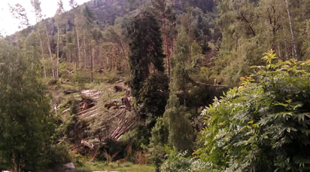 Для расчистки территории Иле-Алатауского государственного природного парка от деревьев, поваленных в результате урагана 17 мая, потребуется минимум два года, передает корреспондент Tengrinews.kz. Об этом на пресс-конференции в Алматы рассказал министр сельского хозяйства Асылжан Мамытбеков. "В истории еще не было такого сильного урагана, никто из работников такого не помнит. Последствия урагана стали совсем непредсказуемыми, в некоторых местах он сопки вообще не задел, а рядом деревья повалены, лежат, как будто расческой причесали. Очень необычная природная ситуация", - отметил министр. Он сообщил, что будет создана специальная межведомственная комиссия, которая учтет финансовые, экологические вопросы, а также вопросы по восстановлению леса и почвы. Уже подписан документ, который разрешает продавать древесину. "Все вырученные деньги пойдут на восстановление леса и на посадку молодых деревьев. Часть будет продана по оптовым ценам, другая реализована другим заинтересованным компаниям. Причем, нужно это сделать как можно скорее, чтобы не пошла эрозия почвы", - заявил Мамытбеков. Вместо поваленных деревьев будут посажены тяньшаньские ели, однако эти хвойные достигнут в высоту 20 метров лишь за 150 лет. Что касается постройки перерабатывающих заводов, о которых говорилось раньше, то, по словам руководства природного парка, их строить не будут, однако будут установлены передвижные пилорамы. Кроме 300 человек, занимающихся расчисткой территории, необходимо еще 160 специалистов. По словам заместителя генерального директора Иле-Алатауского парка Дамира Мальгельдиева, квалифицированных работников, имеющих опыт в лесной отрасли, не хватает.