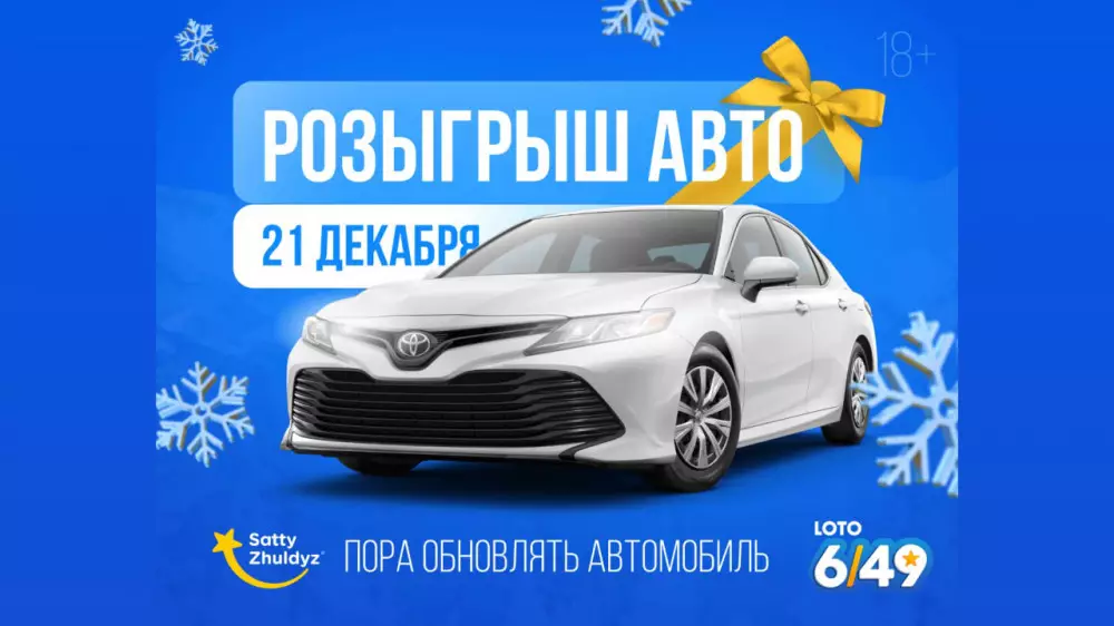 Национальная лотерея "Сәтті Жұлдыз" создает атмосферу предновогодних чудес, сюрпризов и подарков. Уже через несколько дней состоится розыгрыш автомобиля Toyota Camry в лотерее Loto 6/49. Для этого нужно приобрести ЛотоНабор "Автомобиль", который состоит из шести билетов, всего за 1800 тенге. Количество ЛотоНаборов, которое может купить один участник, не ограничено.