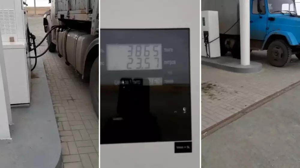 "Говорят, что в Казахстане солярки нет. Вот, российские машины приехали, заправляются в Алимбетовке. Вывозят солярку, а нам не дают, говорят, что ее нет. По 164 тенге отдают, у нас по 270 не дают даже. В день по 90 тонн вывозят. То же самое и с газом. По три-четыре рейса в день делают", - говорит голос за кадром.