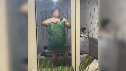 В социальных сетях распространяется снимок мужчины, который, стоя на кровати, фотографируется в зеркале, прикрываясь зеленой подушкой. Публикация похожа на популярный в Сети "карантинный" челлендж. В рассылке утверждается, что на фото - заместитель начальника Департамента полиции Алматы.