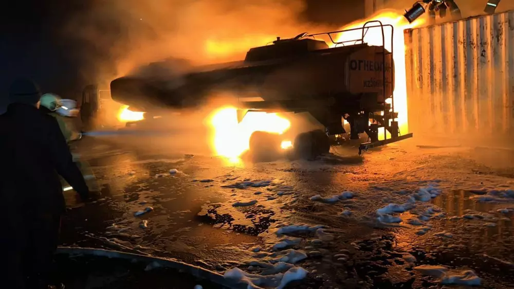 Сообщается, что вечером 5 января в полицию Аягузского района поступило сообщение от 42-летнего местного жителя о том, что в селе Актогай произошло возгорание автоцистерны КамАЗа.