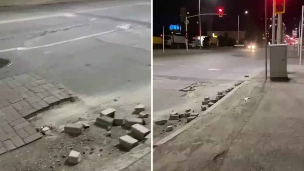 Астанчанин пожаловался на состояние дороги по улице Иманова. На кадрах видно, что обломки брусчатки выбросило на обочину.