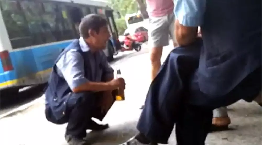 Речь идет о водителе автобуса Аманжоле Демежанове. Один из наших читателей прислал фотографии, на которых запечатлен мужчина в форме водителя общественного транспорта с бутылкой пива в руках.