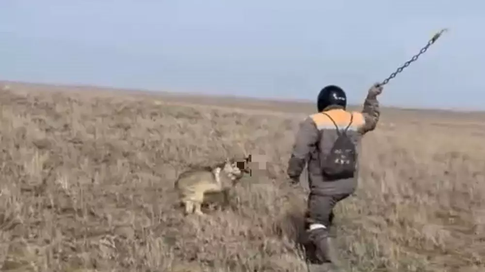 В полиции Актюбинской области сообщили, что в ходе мониторинга соцсетей обнаружили видео, где мужчина избивает волка цепью.