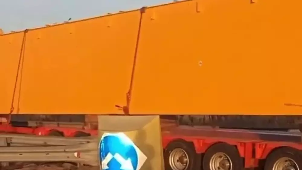 "Водитель хотел подняться на транспортную развязку Байсерке (правоповоротный съезд). Не рассчитал габариты. Негабаритное автотранспортное средство не вместилось на заезд (подъем) вышеуказанной развязки, а именно по радиусу закругления заезда. Также поясняем, что, согласно ГОСТу, на данном участке дороги знаки "Ограничение ширины" и "Ограничение длины" не устанавливаются", - рассказали в "Казавтожол".