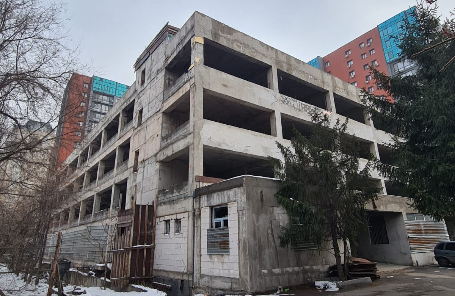 Еще один долгострой Алмалинского района - это общежитие хореографического училища имени Селезнева на пересечении Масанчи и Жамбыла. Строительство было начато и остановлено в 2014 году.