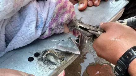 С помощью специальных режущих инструментов подоспевшие вовремя спасатели МЧС вызволили застрявший палец.