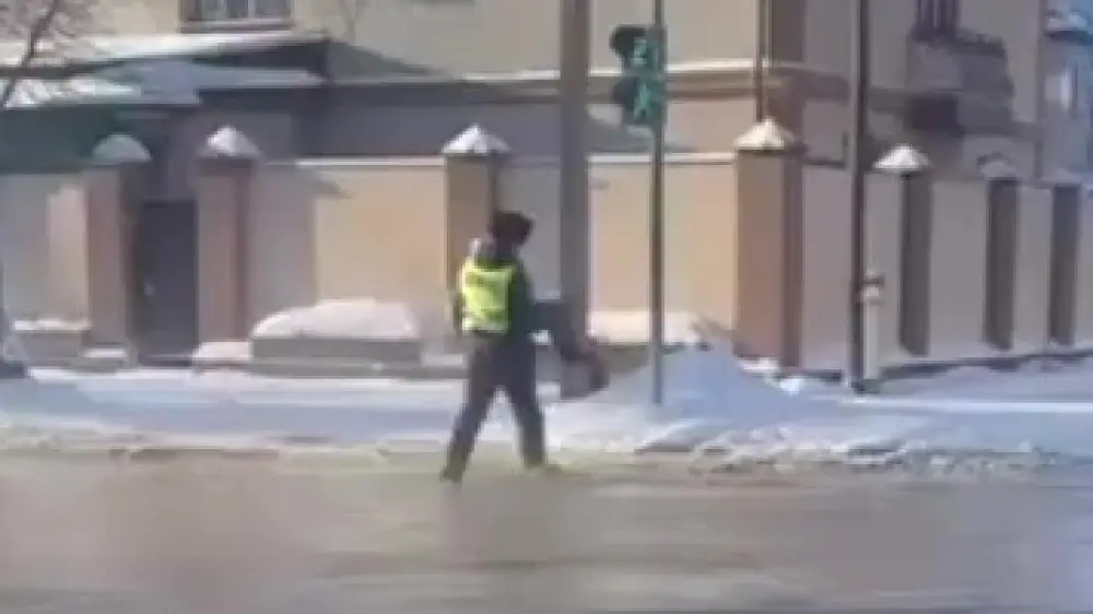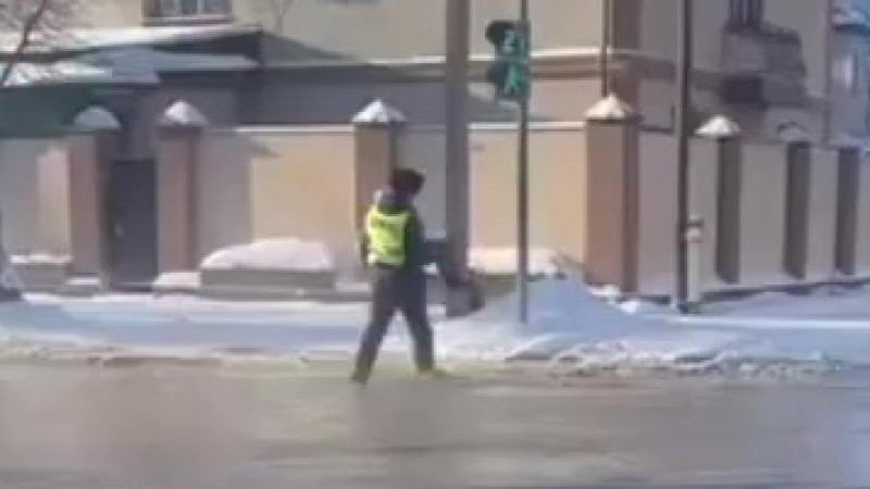 В социальных сетях обсуждают поступок полицейского из Павлодара, который помог ребёнку перейти затопленную улицу. В павлодарском паблике завирусился ролик, на котором сотрудник полиции на руках переносит мальчика через проезжую часть, залитую водой после коммунальной аварии.