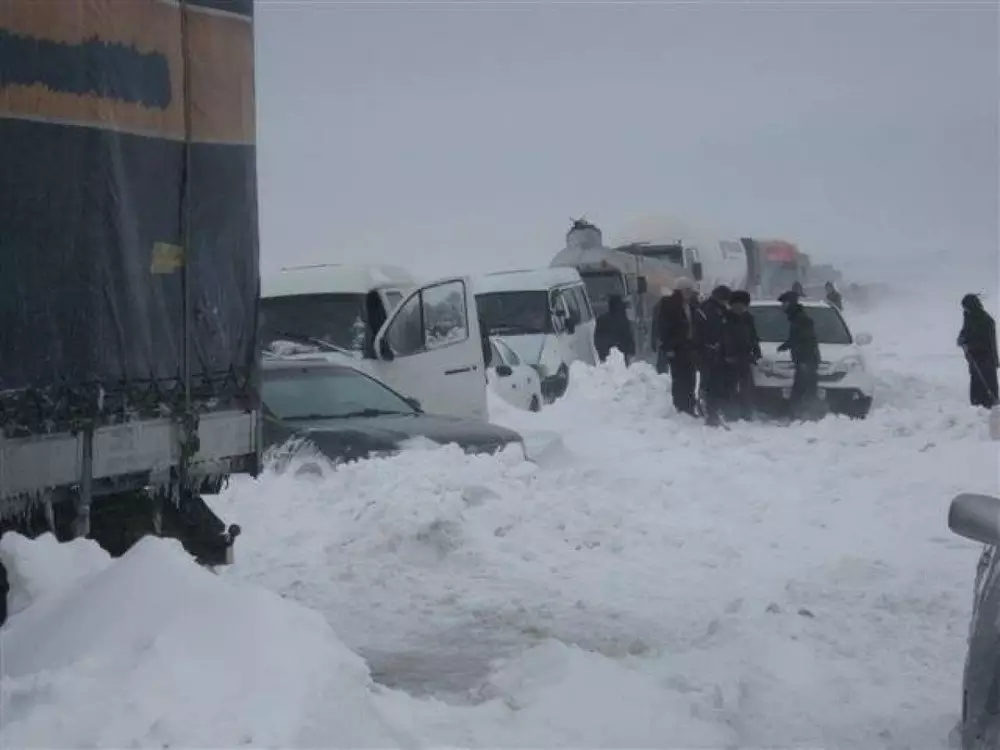 "За минувший день в Актюбинской области на автодороге "Самара-Шымкент" на 808 километре из-за плохих погодных условий столкнулись два автомобиля, образовался затор из 500 машин", - говорится в сообщении.