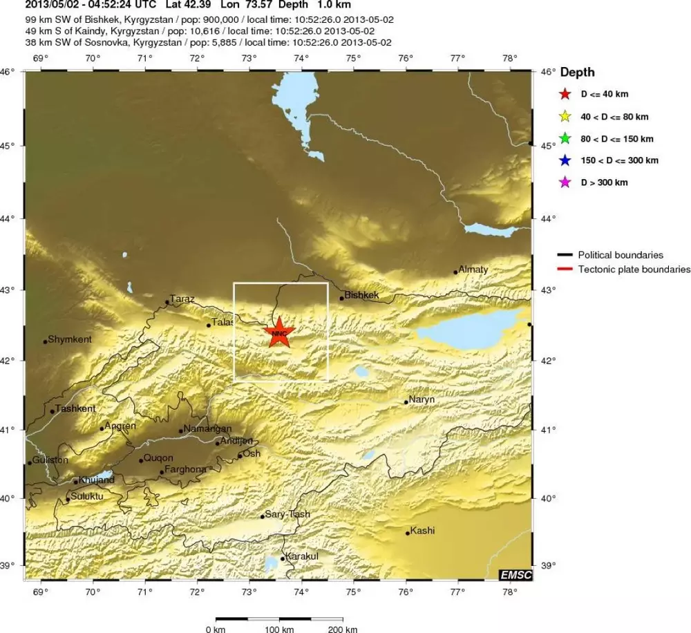 Подземные толчки были зафиксированы в 10.52 по времени Астаны. Эпицентр землетрясения, энергетический класс которого составил 9,9, находился в приграничном районе Кыргызстана и Казахстана. Информации о пострадавших и разрушениях нет.
