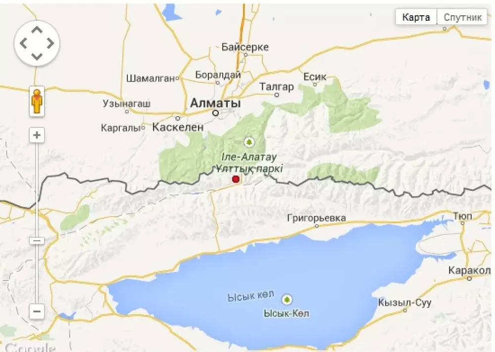 Землетрясение магнитудой 4,3 произошло в 35 километрах от Алматы Карта с указанием эпицентра землетрясения с сайта some.kz