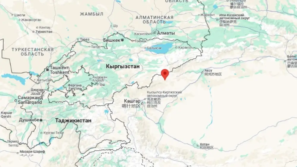 Землетрясение произошло в 277 километрах от Алматы Скриншот Google Карты
